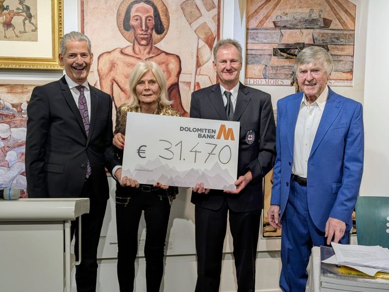 Zum Abschluss der Ausstellung „Egger-Lienz und der Teuflemaler“ in der Dolomitenbankgalerie konnte ein Spendenscheck an Tierschutzverein und Rotes Kreuz Osttirol überreicht werden.
