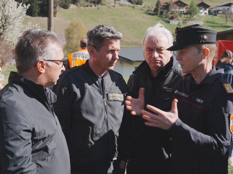 Bei einem Lokalaugenschein in St. Lorenzen im Lesachtal dankte der Kärntner LH Fellner den Einsatzkräften und sagte weitere Unterstützung zu. Die Löscharbeiten dauern weiter an.