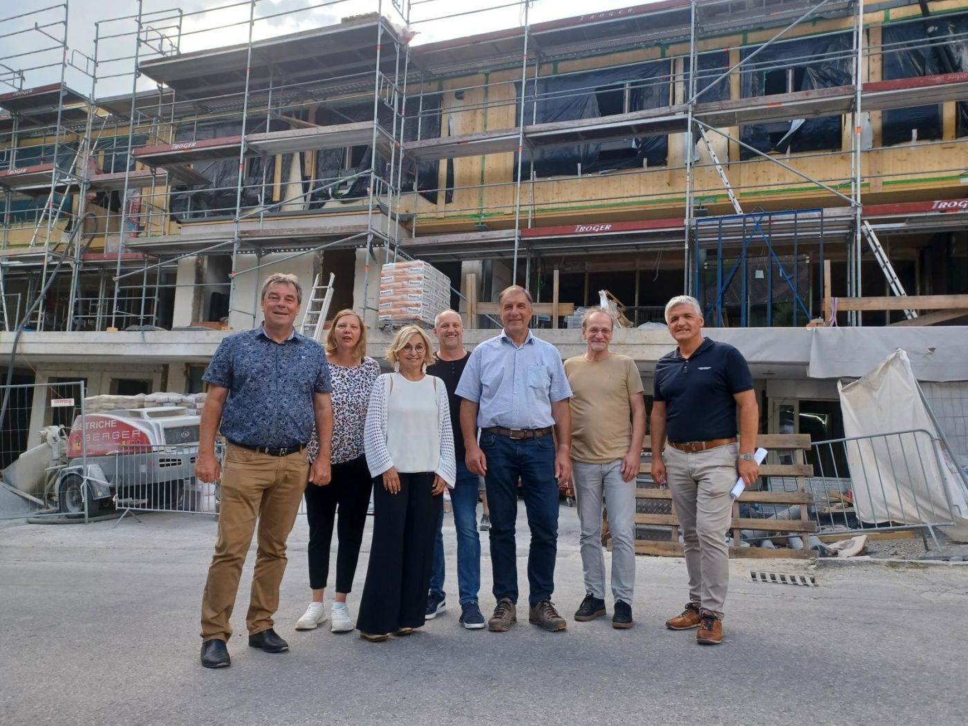 Andreas Pfurner (Verbandsausschuss), Magdalena Bauernfeind (Wirtschaftsleiterin), Elisabeth Blanik (Verbandsobfrau), Christian Wibmer (Pflegedienstleiter), Raimund Steiner (Obm Bauausschuss und Standort-Bgm), Architekt Anton Mariacher und Verwalter Franz Webhofer, Fotos: Artinger