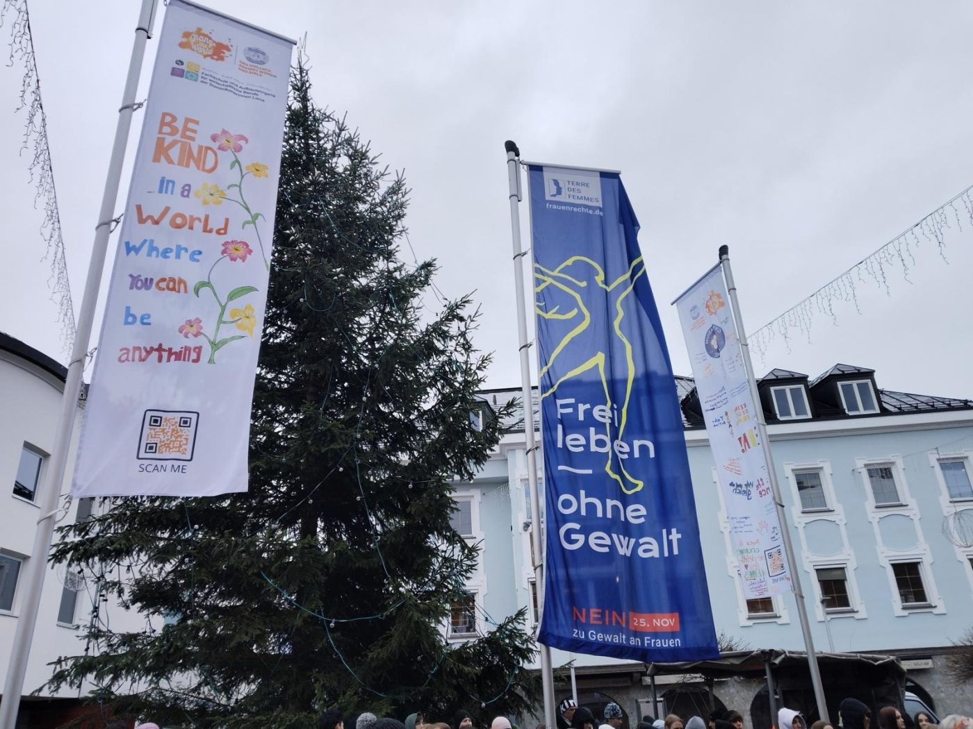 Fahnen gehisst - gegen Gewalt an Frauen