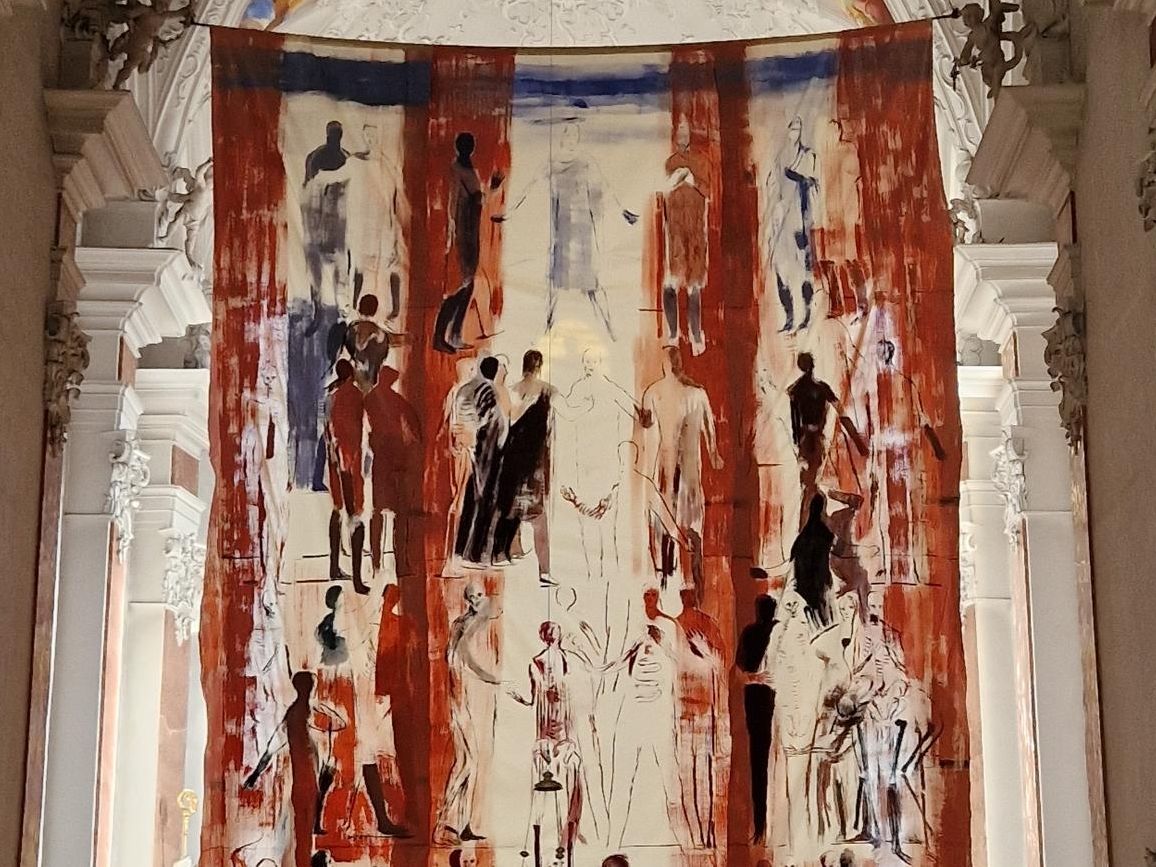Seit dem Aschermittwoch hängt in der Lienzer Pfarrkirche St. Andrä das Fastentuch von Michael Hedwig. Der aus Lienz stammende Maler und Grafiker hat das Fastentuch vor 15 Jahren im Auftrag der Diözese Innsbruck bzw. der Dompfarre für den Innsbrucker Dom angefertigt. Dieses war im letzten Jahr erstmals in der Lienz zu sehen und begleitet auch heuer wieder durch die Fastenzeit bis zum Karsamstag.