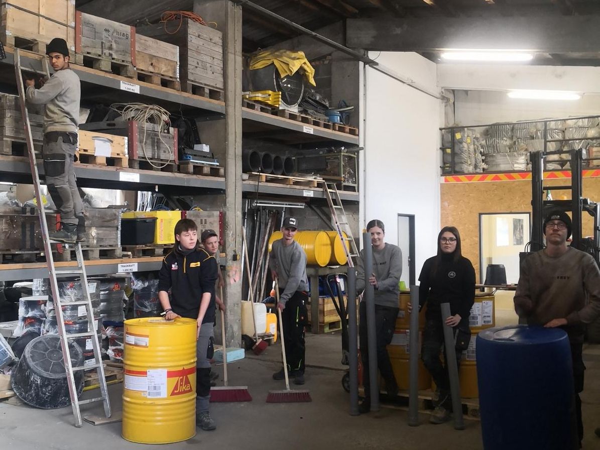 Margie Sackl übernahm die heurige Arbeit mit den Lehrlingen der Firma. Sie übte mit ihnen eine rhythmische Performance auf etwa Baustellengeräten, Besen oder Ölfässern ein.