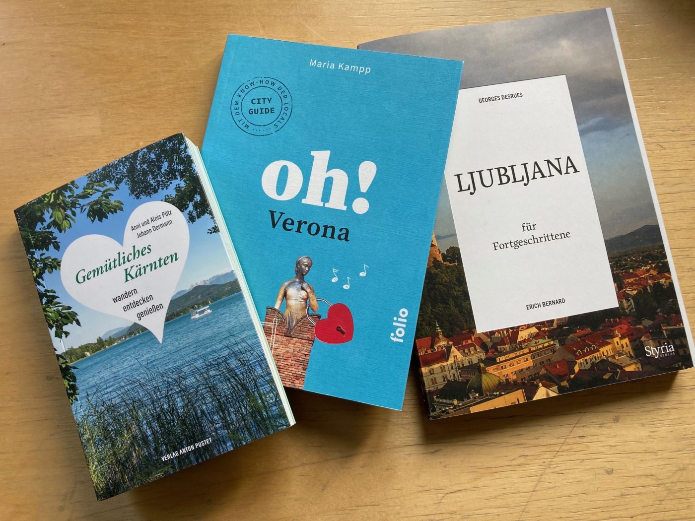 Wenn das Wetter passt, kann man auch jetzt noch reisen. Vielleicht nach Lubljana, nach Verona oder ins benachbarte Kärnten. Mal näher, mal etwas weiter weg, aber alles leicht erreichbar. Und wer in diesem Jahr keine Urlaubstage mehr übrig hat, der sich zuhause auf die Reise machen, mit unseren drei Reisebüchern, die viel über die Geschichte, Küche und ganz besondere Orte erzählen.