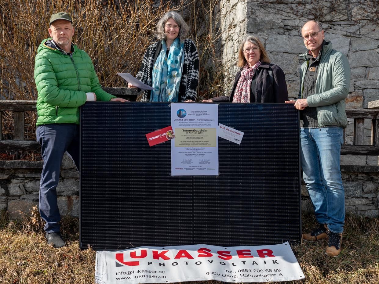 Wie die Pfarrgemeinde informiert, soll diese etwa ein Drittel des eigenen Strombedarfs decken. Die Investition von rund 20.000 Euro wird durch eine Bausteinaktion finanziert. Interessierte können Solarbausteine im Wert von je 250 Euro erwerben und bekommen das investierte Geld über fünf Jahre zurückbezahlt. Zusätzlich erhalten Teilnehmer einen Gutschein des Stadtmarkts Lienz im Wert von 10 Euro pro Rate. Auch Spenden sind willkommen. Die Hälfte der Kosten ist bereits durch Darlehen und Spenden gedeckt. Zur Aktion findet am 17. März ein Infonachmittag im Gemeindesaal der Martin-Luther-Kirche statt.
