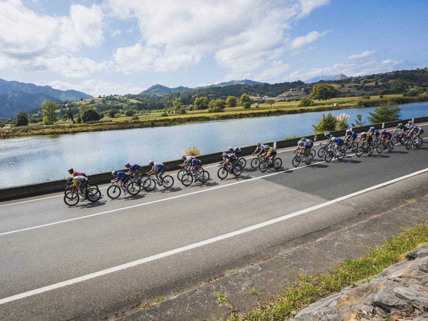 Das Peloton rollt durch Spanien – mit Felix Gall unter den besten. Foto: Unipublic/Naike Ereñozaga
