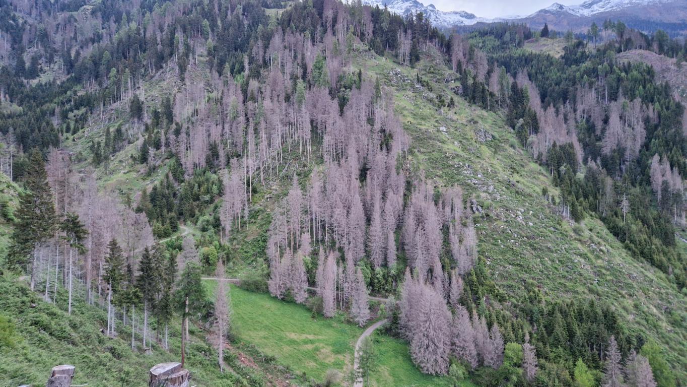 Das sehr feuchte Wetter im Frühjahr 2024 sowie die Entwaldung der steilen Hänge durch den Borkenkäferbefall haben am Helenenbichl dazu geführt, dass der Weg westlich der Kirche weggebrochen ist und gesperrt werden musste. Anfangs hoffte man noch, durch Steinschlichtung am Wegfuß den Schaden beheben zu können. Bei Beginn der Grabungsarbeiten stellte sich jedoch heraus, dass diese Arbeiten nicht genügen. Begutachtungen durch Hangsicherungsexperten empfahlen eine Sicherung mit Verankerung des Wegfußes zurück in den Felsen und weiterem Aufbau mit Geogitter.