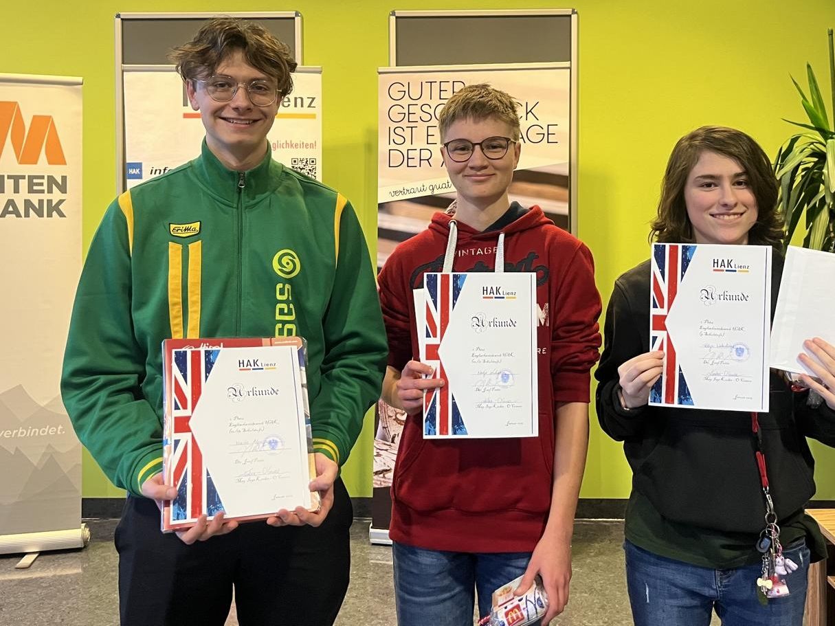 An der BHAK Lienz hat Anfang des Jahres ein schulübergreifender Fremdsprachenwettbewerb stattgefunden, an dem Schüler und Schülerinnen aus verschiedenen berufsbildenden höheren Schulen Osttirols teilnahmen.