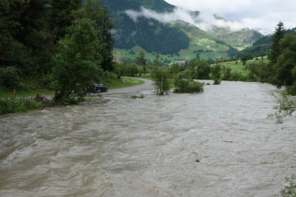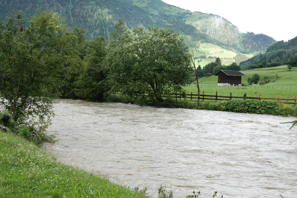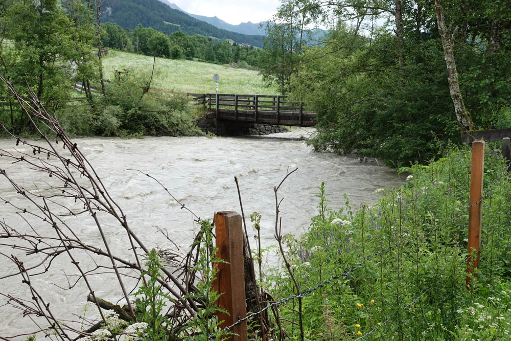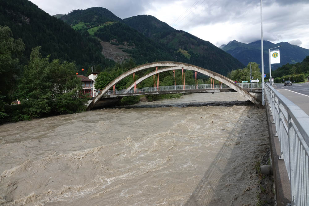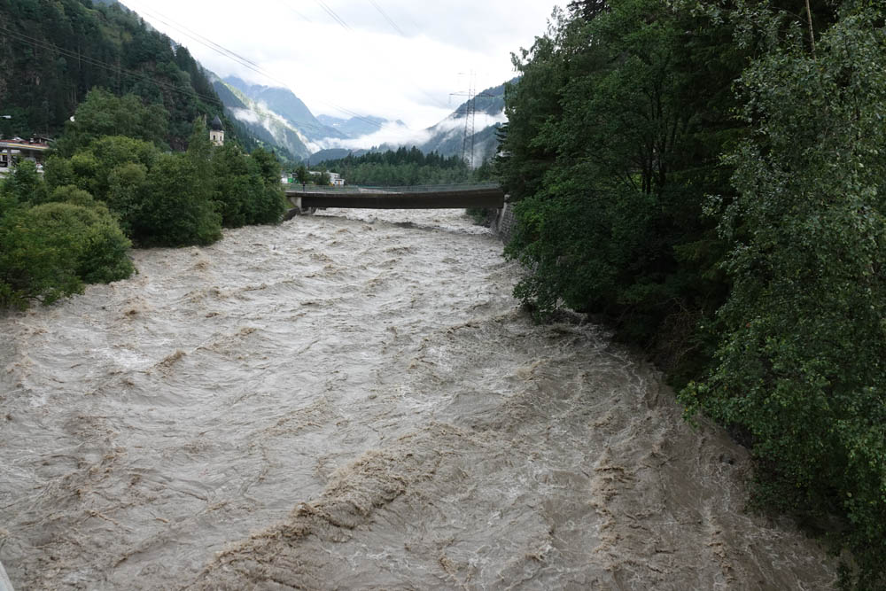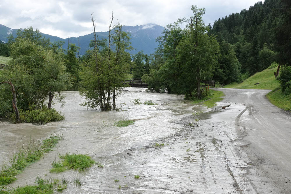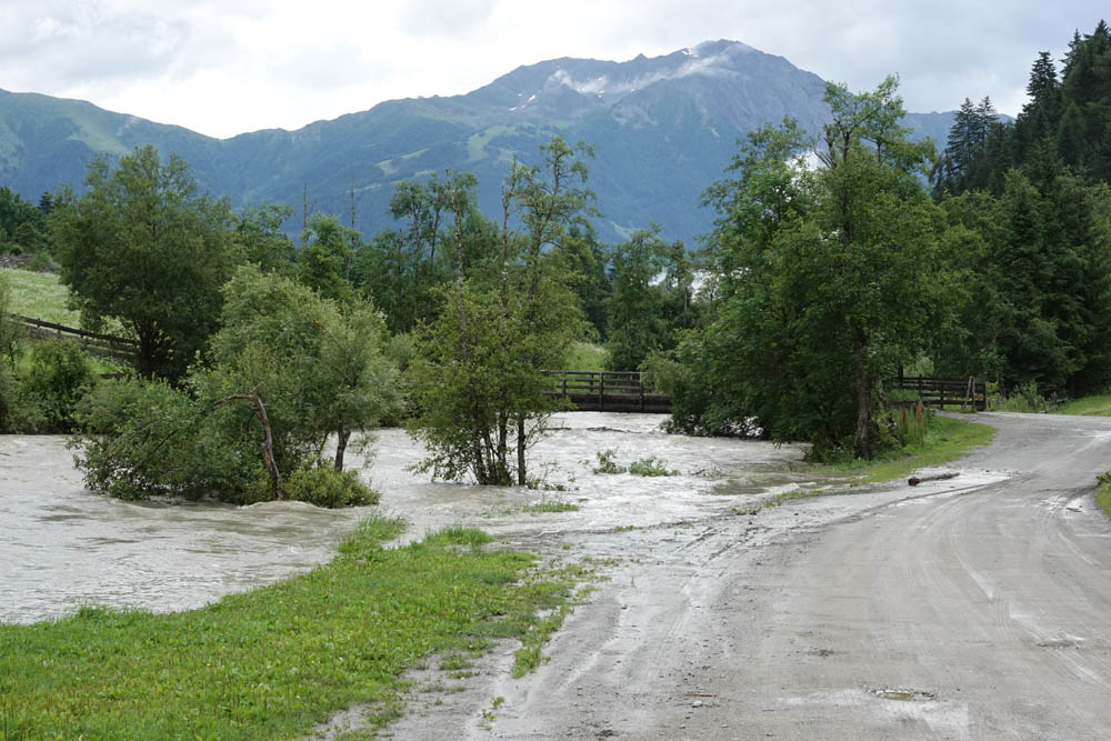 In Folge der starken Niederschläge, die seit Samstagnachmittag über dem Tauernhauptkamm niedergegangen waren, kam es auf Osttiroler Seite zu Überflutungen. Betroffen unter anderem das Gschlösstal oder die B 108 Felbertauernstraße in Matrei, die auch unterspült und beschädigt wurde.