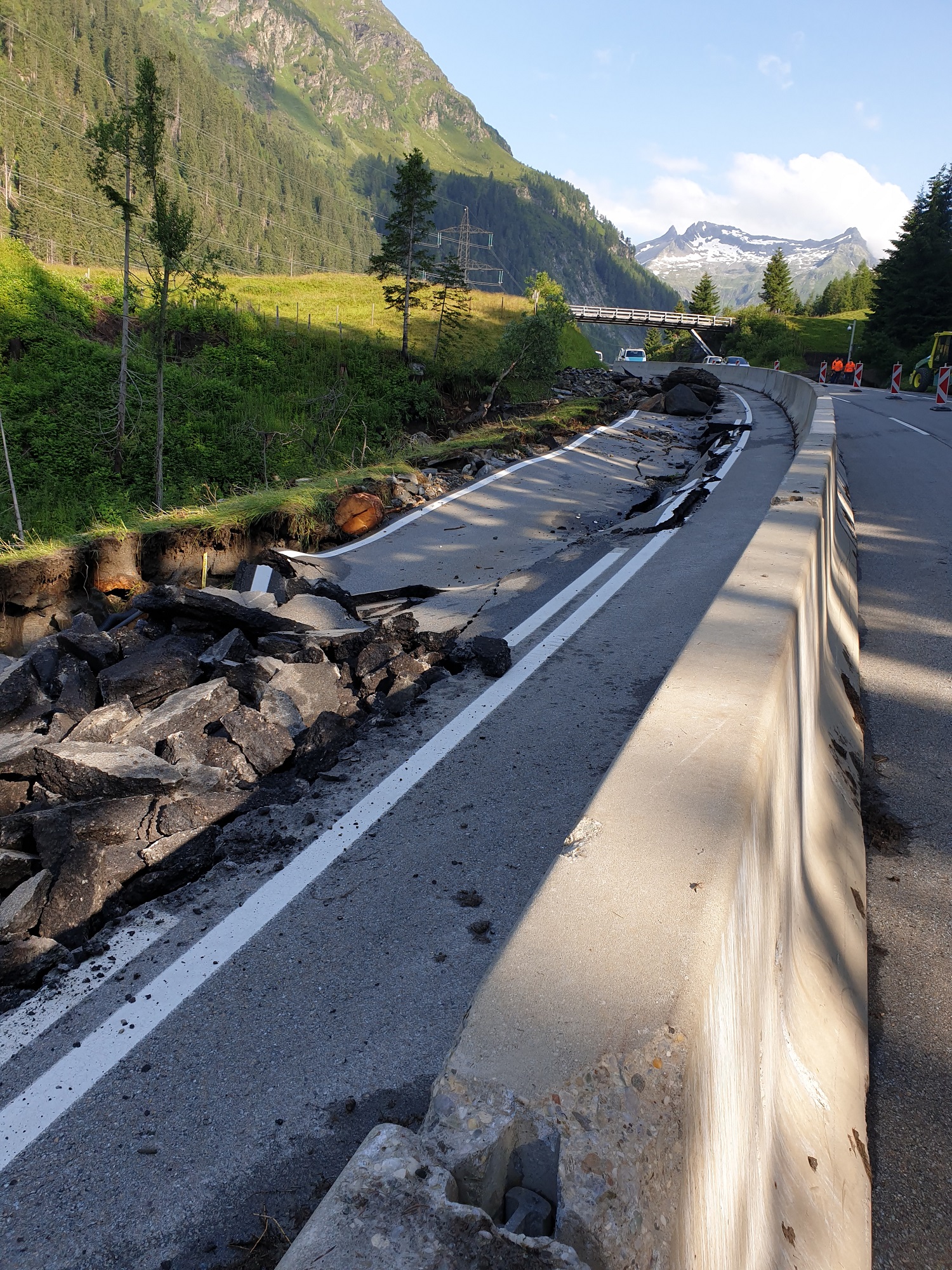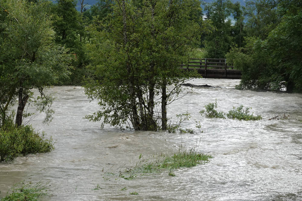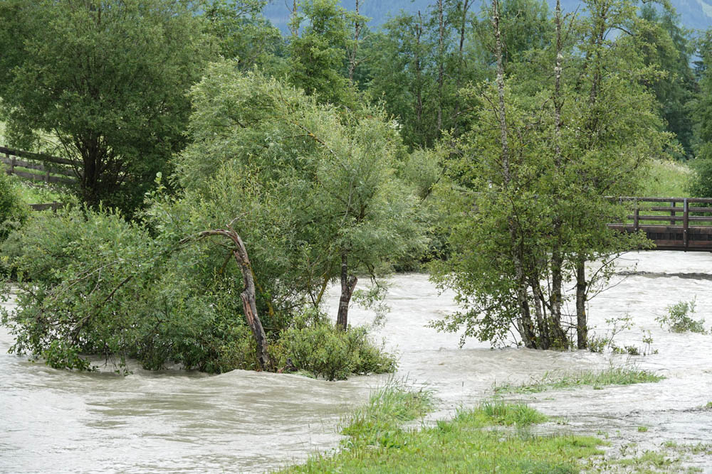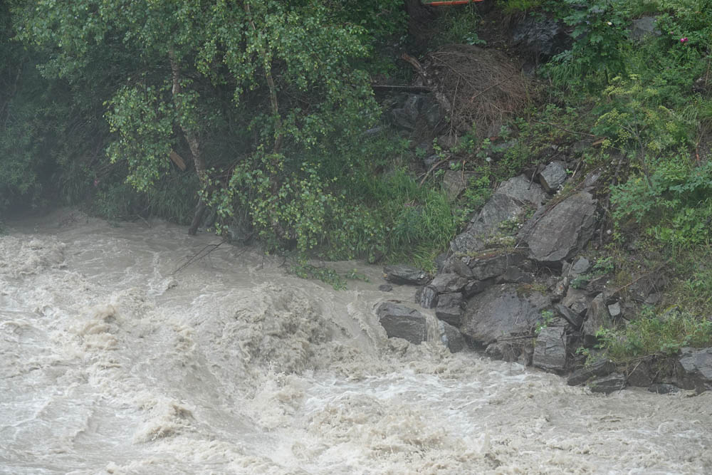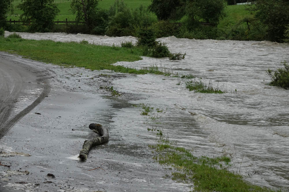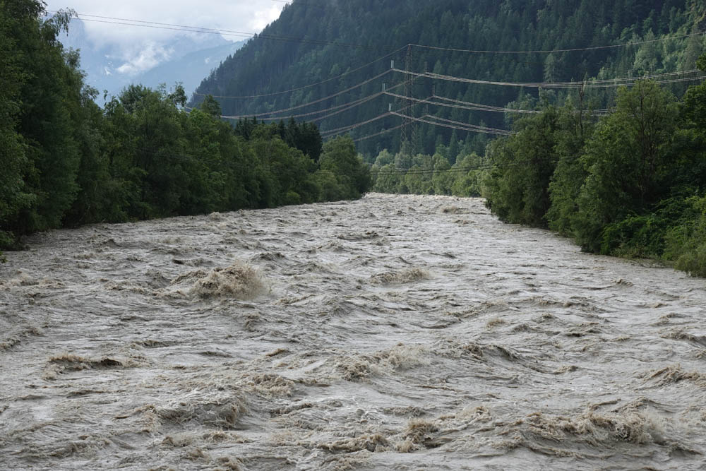 In Folge der starken Niederschläge, die seit Samstagnachmittag über dem Tauernhauptkamm niedergegangen waren, kam es auf Osttiroler Seite zu Überflutungen. Betroffen unter anderem das Gschlösstal oder die B 108 Felbertauernstraße in Matrei, die auch unterspült und beschädigt wurde.
