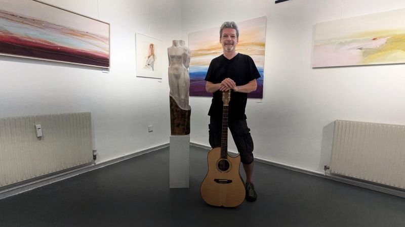 Im Kunstraum Leibl zeigt Savio Verra seine Ausstellung „Horizonte“ – mit Bildern, Skulpturen und selbstgebauten Gitarren.