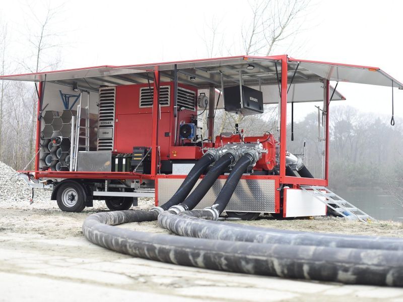 Elf Tonnen schwere Hochleistungspumpe für den Hochwasserschutz ist in Jenbach stationiert und kann im Notfall mobil in ganz Tirol eingesetzt werden.