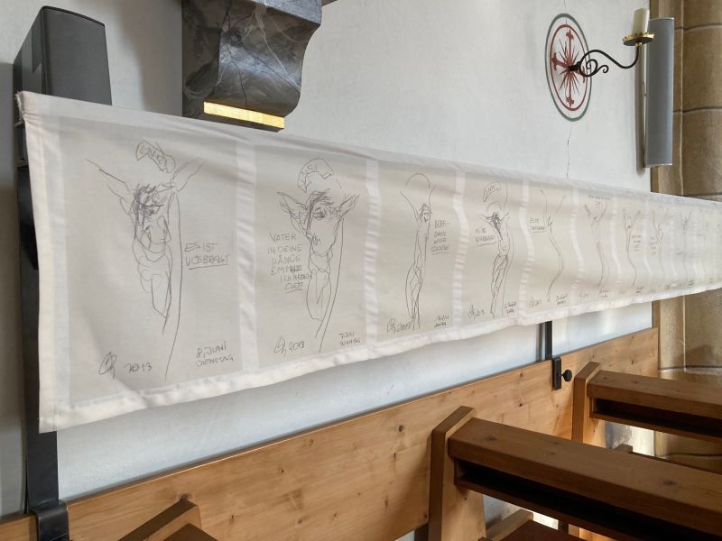 Eine Kunstinstallation mit Zeichnungen des 2017 verstorbenen Osttiroler Malers Oswald Kollreider begleitet in der Kirche St. Oswald durch die Fastenzeit.