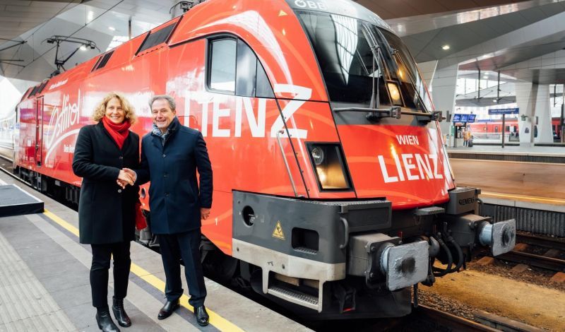 Botschafterin auf Schiene gebracht: Mit der Taufe einer Taurus Lokomotive wird Osttirol künftig im Bahnverkehr präsent sein.