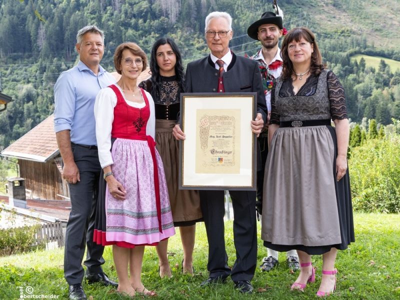Überraschung zum 70. Geburtstag für Alt-Bürgermeister Karl Popeller. Er wurde am 7. September zum Ehrenbürger von Ainet ernannt.
