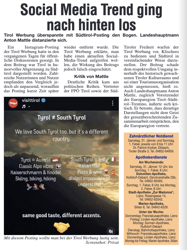 Es gibt aber nur EIN Tirol!